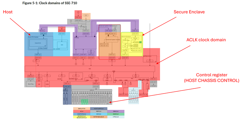 I am currently working with the Arm Corstone SSE-710 platform and have encountered a deadlock issue regarding the ACLK_CTRL register.