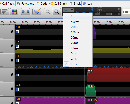 But, Can I see and analyze the profiling data in the order of micro seconds for example 0us, 100us, 200us? .