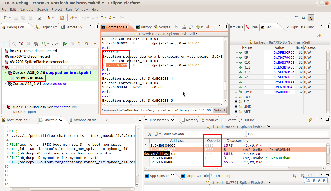 I have tried to select the other A15 to connect the target, but it didn't work.