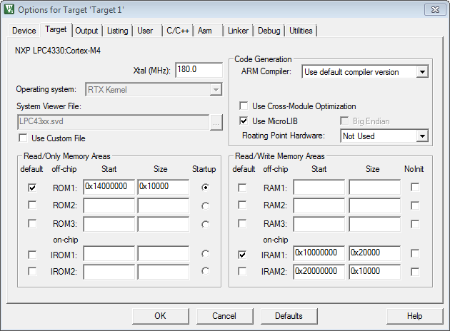 Do not use the first one (for older FRDM boards) and also not the V2.1. Both don't work on the K64F. Using the right one, I see the following in the OPtions for Target dialog window: