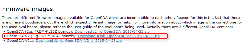I already downloaded in my desktop the JLink_OpenSDA_V2_2015-04-23.bin, indicated for my Freescale FRDM-K64F.