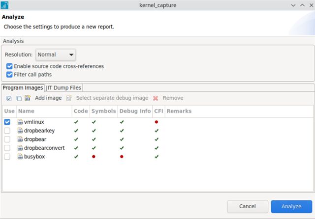 I'm trying to use Streamline to analyze a userspace program and a driver in the Linux kernel which is used by the userspace one.