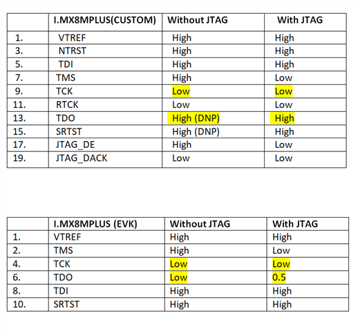 The above for I.MX8MPLUS EVK and I.MX8MPLUS Custom boards ,here we are using Coresight 20 pin JTAG .