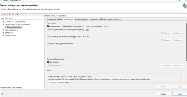 In debugging tab we enabled Connect only after that click on debug. We are getting failed to connect to any devices on the target. Check that the target is correctly connected to the debug probe and powered on.