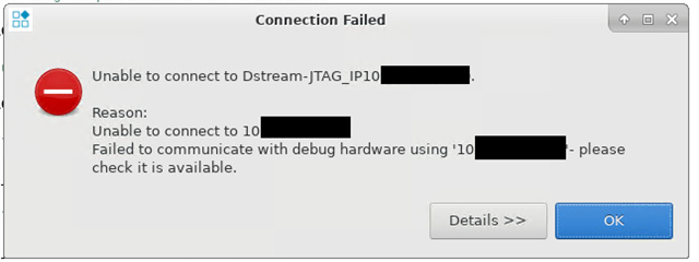 Hi all,I have a DSTREAM DS-5 stopped to work, showing a connection failed from the IDE (fig.1) and when I tried to access using its IP it appears that nothing is running on it even if the led still light, and the web-panel showing a password panel instead of the Dstream led representation (fig.2).Is it broken? Is there a way to recover it?Fig. 1Fig. 2