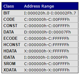 It is said in the L251 documentation that by default, the linker would use below address ranges for a all memory classes
