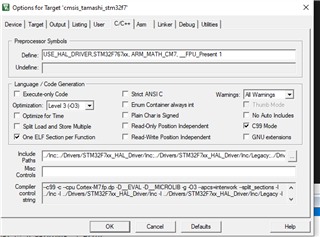 I defined ARM_MATH_CM7 and __FPU_Present 1 in the compiler command line however I am getting macro definition error now