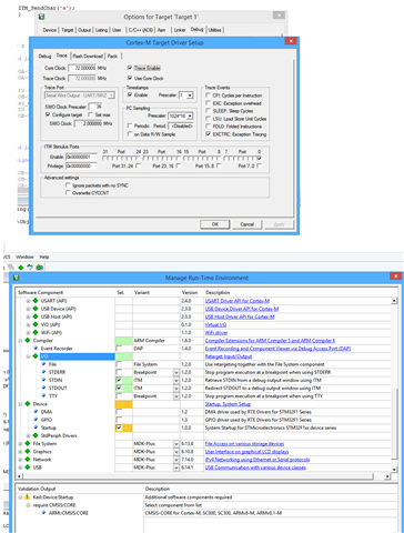 I have set up the debug configurations in the dbgconf and trace.ini files, and configured the target driver for the correct clock rate and data format per the ULINK PRO user guide. I have also freed the SWO pin from other usage.