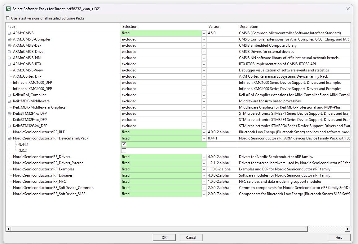 I've tried to compile the experimental_ble_app_hrs_pairing_nfc example. The example requires the NordicSemiconductor::nRF_DeviceFamilyPack version 8.3.1. There is an issue when I try to download the package as shown below: