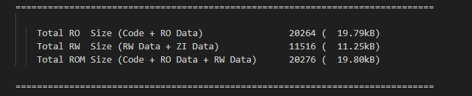 ROM usage - or memory needed to store the application is the total of all the code, and data with initial values (ie RO Data and RW Data). Typically this is how much Flash memory is needed.