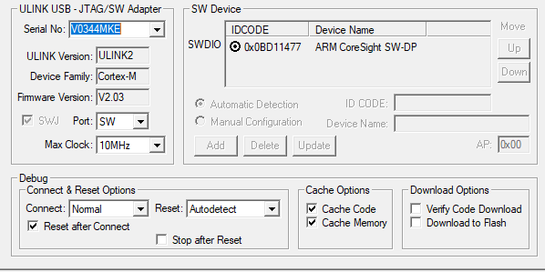 Hello,I have an external ULINK2 debugger which I general use to flash/debug an application through keil uVision5. The option which was selected for flashing/debugging was the cmsis-dap debugger and SWD as protocol and everything works correctly.Now I wanted to use the SWO trace, but CMSIS-DAP does not support that as an option. I switched to ULINK2 as a debugger probe in the configuration and the flashing works fine, but when I try to debug the application, it enters the debug state without any errors and it does not work. What I see while I am in the debugging mode is that no info are shown in the system and thread viewer after a reset. When I start the debugging session while the micro is running I see the correct information, but they are not updating (I have the periodic window update enabled) and lose everything if I reset the micro.