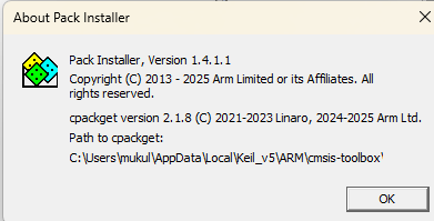 How can I find the version number? I see the Pack Installer version as below. Is there a workaround for this? I need it urgently as I am teaching a university class that starts on Monday with the MDK-ARM and STM32L476. Many thanks
