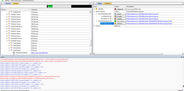 I'm starting an STM32N6 bare-metal project. Everything is going fine until I reach the BSP installation; it takes time loading and fails with the attached error.I've tried installing it separately from the website, and the same issue appears.Is there any suggestions?