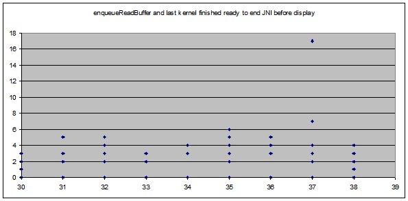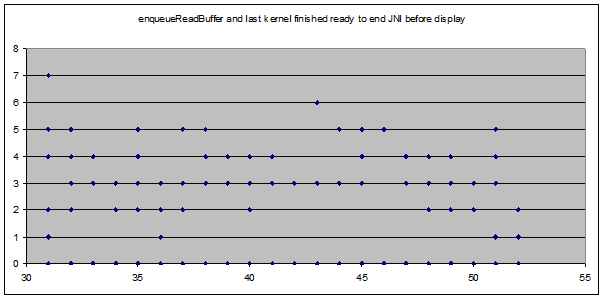 As you can see procees time is very stable in time.Now, the second picture. In this step where a do all the multicore processing (5 time 4 pthread) and (form 1 to 12 time (small amount of data) (2 time 4 pthread) and (1 time 2 pthread)) and some other work in single process for drawing pixel for output.i work with a struc of int (1024*1024). i could use Array ?Time processing dépending of the amount of data to be processed. But in all the picture i procees nearly the same amount of data.I look at the same picture with the camera at the same distance.As you can see Multicore processing is completly choatique. And it is for this step that sometime the debug start missinf frame.here is an example of missing frame. look at the NB frame at seconde 32. so one seconde after the app start.2025-10-11 10:02:32.337 10482-10482/com.example.xiaomi E/JNIProcessor: 12 enqueueReadBuffer and last kernel finished ready to end JNI before display Nb Frame 18 in 63 ms 2025-10-11 10:02:32.340 10482-10482/com.example.xiaomi E/JNIProcessor: 4 traitement enqueueNDRangeKernel finished in 2 ms 2025-10-11 10:02:32.363 10482-10482/com.example.xiaomi E/JNIProcessor: 6 enqueueMapBuffer and all kernel start CPU multicore finished in 25 ms 2025-10-11 10:02:32.392 10482-10482/com.example.xiaomi E/JNIProcessor: 10 traitement enqueueWriteBuffer and all CPU finished in 54 ms 2025-10-11 10:02:32.395 10482-10482/com.example.xiaomi E/JNIProcessor: 12 enqueueReadBuffer and last kernel finished ready to end JNI before display Nb Frame 19 in 57 ms 2025-10-11 10:02:32.406 10482-10482/com.example.xiaomi E/JNIProcessor: 4 traitement enqueueNDRangeKernel finished in 2 ms 2025-10-11 10:02:32.438 10482-10482/com.example.xiaomi E/JNIProcessor: 6 enqueueMapBuffer and all kernel start CPU multicore finished in 34 ms 2025-10-11 10:02:32.633 10482-10482/com.example.xiaomi E/JNIProcessor: 10 traitement enqueueWriteBuffer and all CPU finished in 53 ms 2025-10-11 10:02:32.635 10482-10482/com.example.xiaomi E/JNIProcessor: 12 enqueueReadBuffer and last kernel finished ready to end JNI before display Nb Frame 23 in 54 ms 2025-10-11 10:02:32.641 10482-10482/com.example.xiaomi E/JNIProcessor: 4 traitement enqueueNDRangeKernel finished in 2 ms 2025-10-11 10:02:32.666 10482-10482/com.example.xiaomi E/JNIProcessor: 6 enqueueMapBuffer and all kernel start CPU multicore finished in 28 ms 2025-10-11 10:02:32.871 10482-10482/com.example.xiaomi E/JNIProcessor: 6 enqueueMapBuffer and all kernel start CPU multicore finished in 25 ms 2025-10-11 10:02:33.010 10482-10482/com.example.xiaomi E/JNIProcessor: 10 traitement enqueueWriteBuffer and all CPU finished in 51 ms 2025-10-11 10:02:33.013 10482-10482/com.example.xiaomi E/JNIProcessor: 12 enqueueReadBuffer and last kernel finished ready to end JNI before display Nb Frame 28 in 55 ms 2025-10-11 10:02:33.016 10482-10482/com.example.xiaomi E/JNIProcessor: 4 traitement enqueueNDRangeKernel finished in 2 ms 2025-10-11 10:02:33.037 10482-10482/com.example.xiaomi E/JNIProcessor: 6 enqueueMapBuffer and all kernel start CPU multicore finished in 23 ms 2025-10-11 10:02:33.366 10482-10482/com.example.xiaomi E/JNIProcessor: 6 enqueueMapBuffer and all kernel start CPU multicore finished in 31 ms 2025-10-11 10:02:33.796 10482-10482/com.example.xiaomi E/JNIProcessor: 10 traitement enqueueWriteBuffer and all CPU finished in 58 ms 2025-10-11 10:02:33.799 10482-10482/com.example.xiaomi E/JNIProcessor: 12 enqueueReadBuffer and last kernel finished ready to end JNI before display Nb Frame 37 in 61 ms 2025-10-11 10:02:33.802 10482-10482/com.example.xiaomi E/JNIProcessor: 4 traitement enqueueNDRangeKernel finished in 2 ms 2025-10-11 10:02:33.831 10482-10482/com.example.xiaomi E/JNIProcessor: 6 enqueueMapBuffer and all kernel start CPU multicore finished in 31 ms 2025-10-11 10:02:33.926 10482-10482/com.example.xiaomi E/JNIProcessor: 10 traitement enqueueWriteBuffer and all CPU finished in 60 ms 2025-10-11 10:02:33.930 10482-10482/com.example.xiaomi E/JNIProcessor: 12 enqueueReadBuffer and last kernel finished ready to end JNI before display Nb Frame 39 in 64 ms 2025-10-11 10:02:33.934 10482-10482/com.example.xiaomi E/JNIProcessor: 4 traitement enqueueNDRangeKernel finished in 3 ms 2025-10-11 10:02:33.963 10482-10482/com.example.xiaomi E/JNIProcessor: 6 enqueueMapBuffer and all kernel start CPU multicore finished in 33 ms 2025-10-11 10:02:34.198 10482-10482/com.example.xiaomi E/JNIProcessor: 4 traitement enqueueNDRangeKernel finished in 2 ms 2025-10-11 10:02:34.229 10482-10482/com.example.xiaomi E/JNIProcessor: 6 enqueueMapBuffer and all kernel start CPU multicore finished in 33 ms 2025-10-11 10:02:34.254 10482-10482/com.example.xiaomi E/JNIProcessor: 10 traitement enqueueWriteBuffer and all CPU finished in 58 ms 2025-10-11 10:02:34.256 10482-10482/com.example.xiaomi E/JNIProcessor: 12 enqueueReadBuffer and last kernel finished ready to end JNI before display Nb Frame 42 in 61 msand the last picture were i do 2 kernel and an enqueueReadBuffer before getting out of JNI for drawing.as you can see it is quite stable, between 2 and 5ms. The zéro in every picture are just ecxel blanc value.May be the Debug ;))here are the same 3 picture but this time a removed nearly all the debug and specially the one that insidethe function called by pthread. So i found the solution just because i did this post. At the end i ask myself and if it was just the debug.And it was.So very sorry. I feel very stupid rigth now. un peu la honte ;))have a good day.